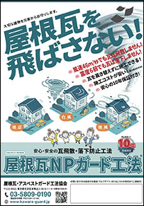 当協会は、自然災害による屋根材の飛散防止工法「屋根瓦NPガード工法」と アスベストの封じ込め材料「 アスベストガード 」の普及を推進しております。